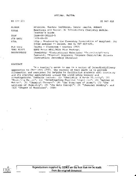 Title: - Reactions And Reason: An Introductory Chemistry Module By Gordon AtkinsonFile Type: PDF EPUB MOBI.